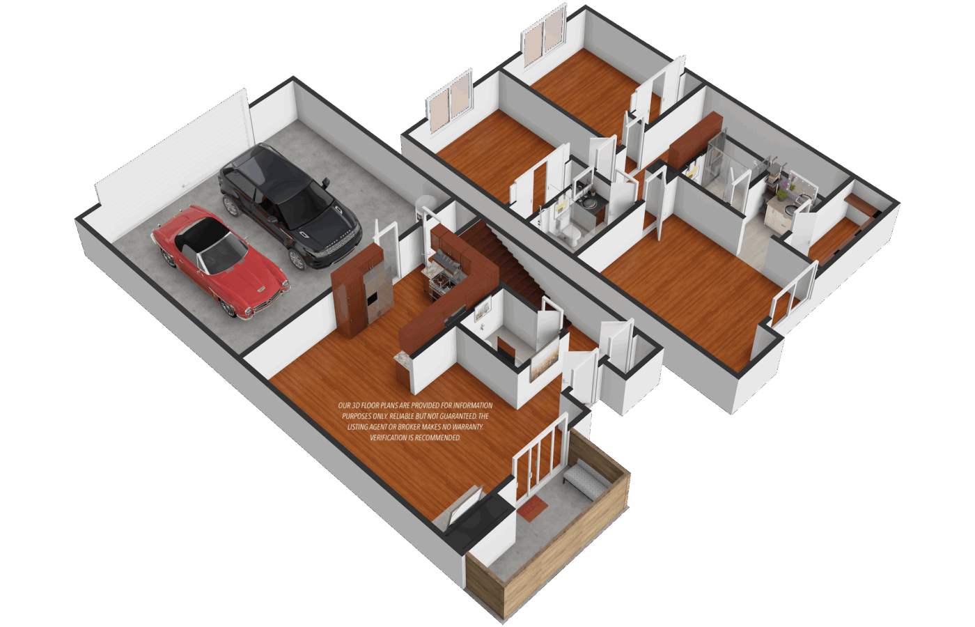 OUR 3D FLOOR PLANS ARE PROVIDED FOR INFORMATION PURPOSES ONLY. WE ADD THE FIXTURES, TEXTURE, COLOR, AND FURNITURES TO MATCH EVERY DETAIL OF THE HOUSE’S ORIGINAL INTERIOR STYLE. BUT WE MAKE NO WARRANTY. FOR INDEPENDENT PROPERTY SIZE, DIMENSIONS, OR ANY OTHER DETAILS, VERIFICATION IS RECOMMENDED. 我們團隊所繪製提供的室內3D立體格局圖及尺寸,所有細節是根據實際擺設和真實格局去繪製,但不提供任何保證僅供參考使用,買主請自行核實。