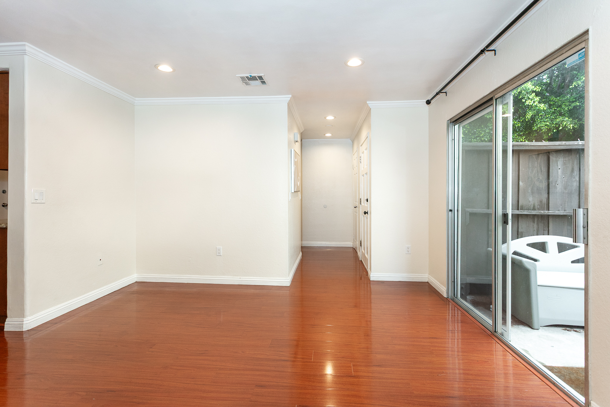 步入屋內迎接您的是溫暖舒適的客廳空間,木質地板搭配壁爐設計,營造出家的溫馨氛圍,與設有吊扇的飯廳銜接,讓視覺空間更為寬敞,讓日常用餐相聚都更加自在愉悅。推拉門通往室內庭院,在這裡可以喝杯咖啡、閱讀放鬆,享受屬於自己的靜謐時光。